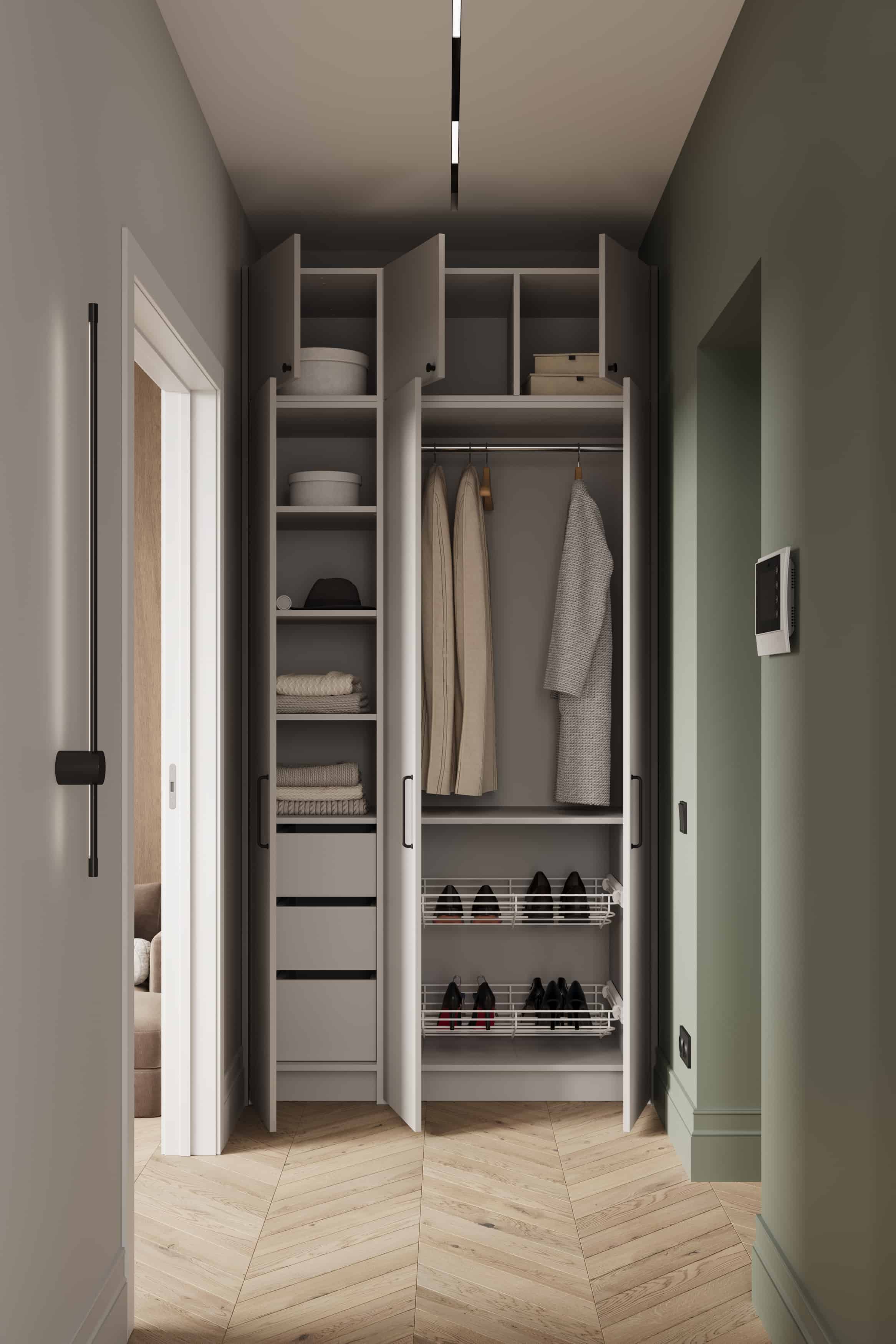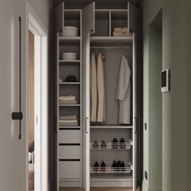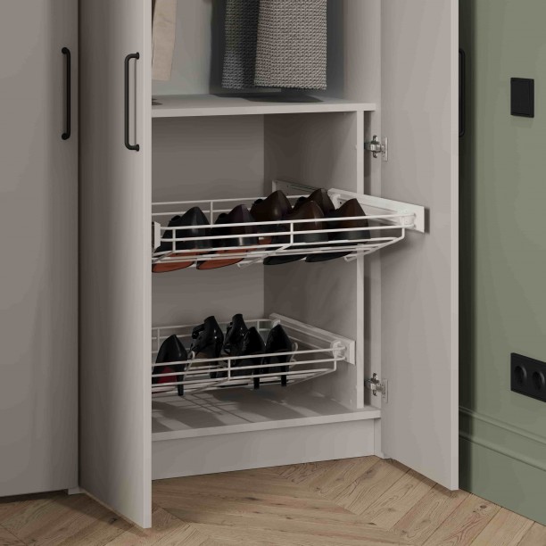 Штанга для одежды Ø25 мм (цвет Хром), выдвижная полка для обуви (ажурная) (цвет Белый)