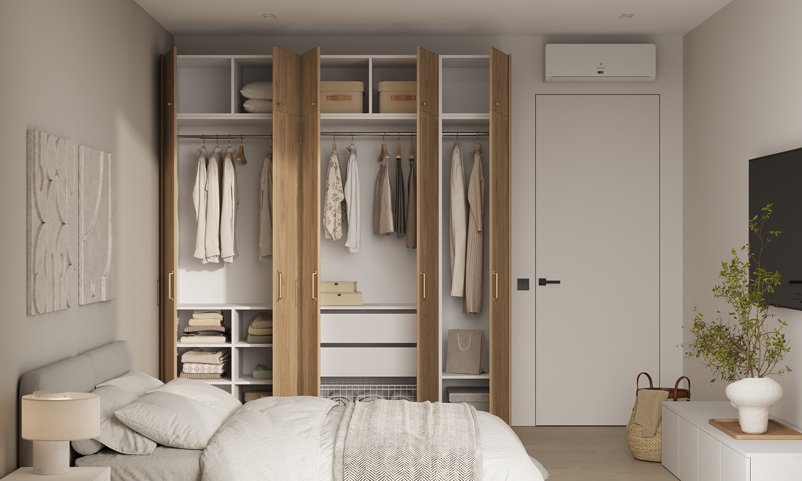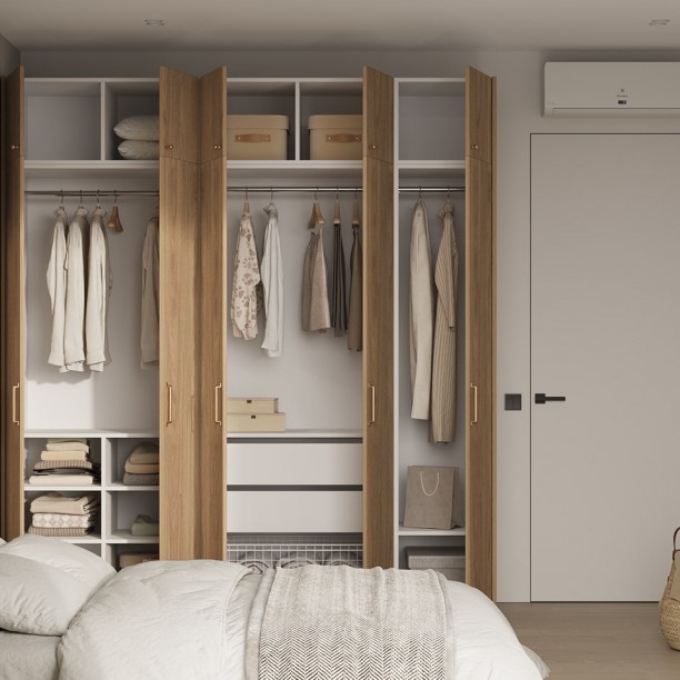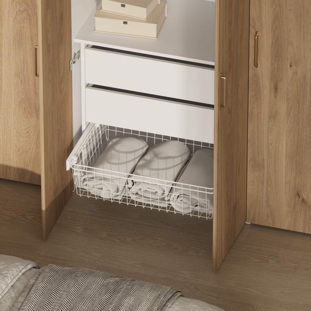 Штанга для одежды Ø25 мм (цвет Хром), выдвижная корзина для белья (цвет Белый)