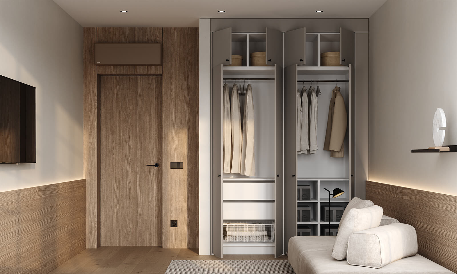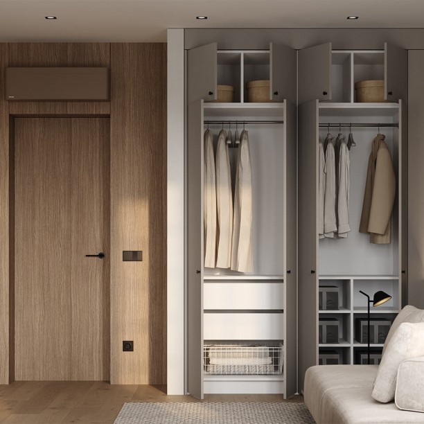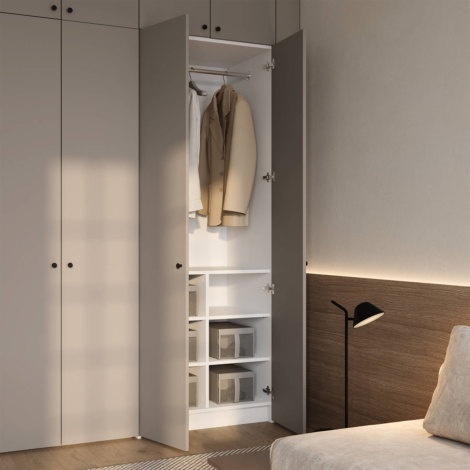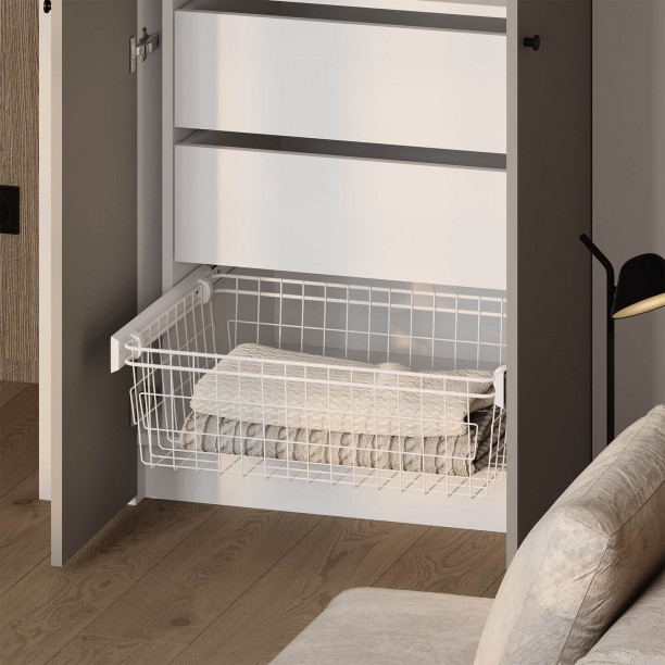 Штанга для одежды Ø25 мм (цвет Хром), выдвижная корзина для белья (цвет Белый)