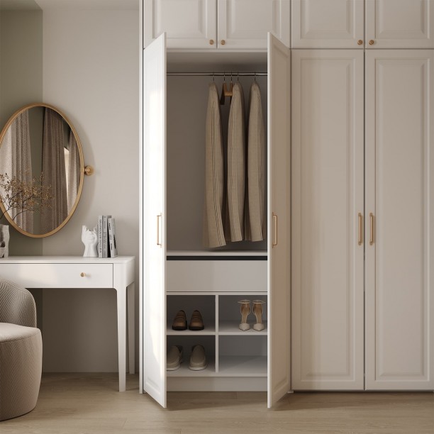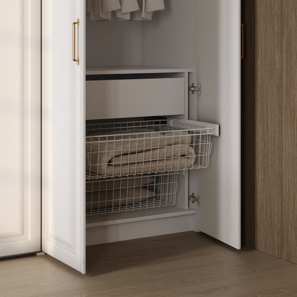 Штанга для одежды Ø25 мм (цвет Хром), выдвижная корзина для белья (цвет Белый)