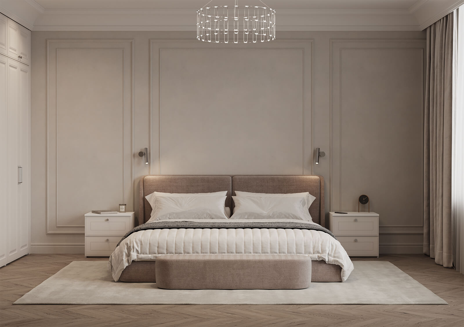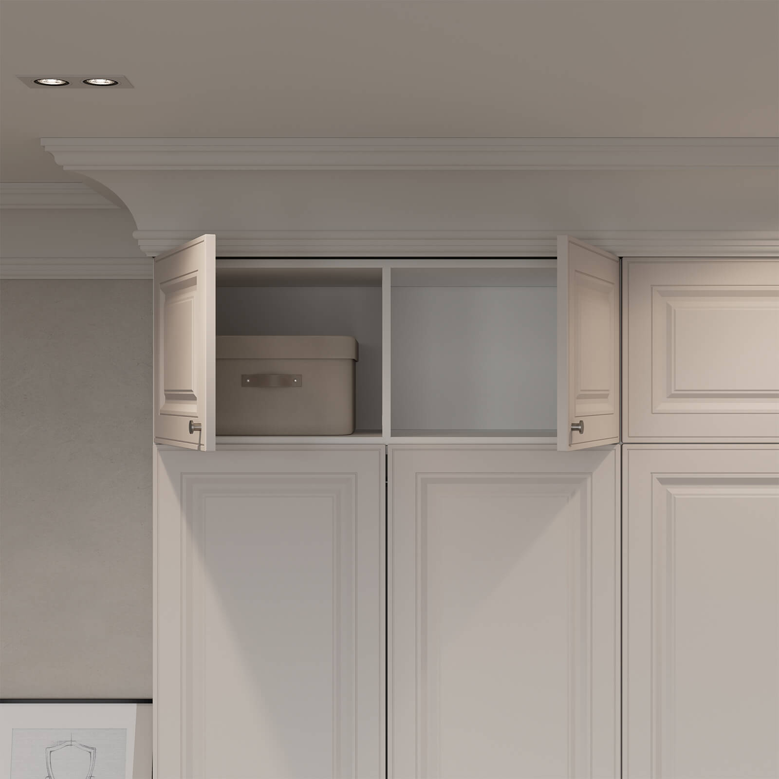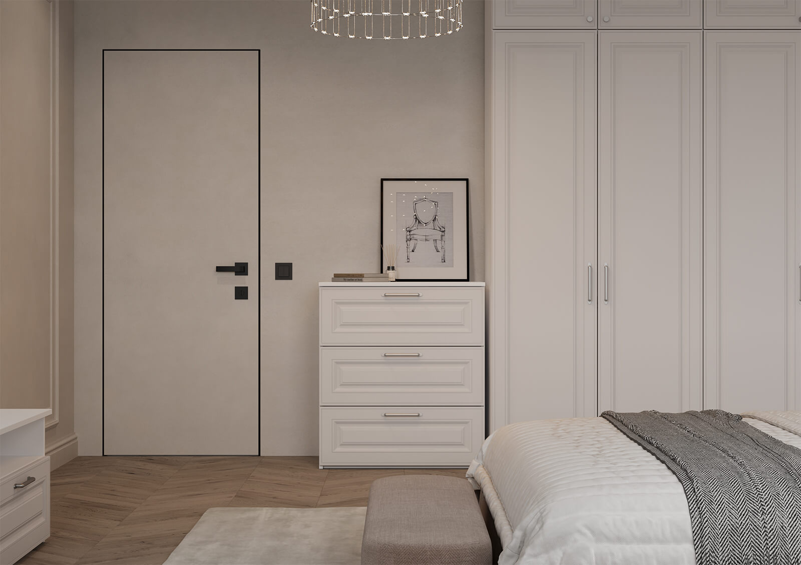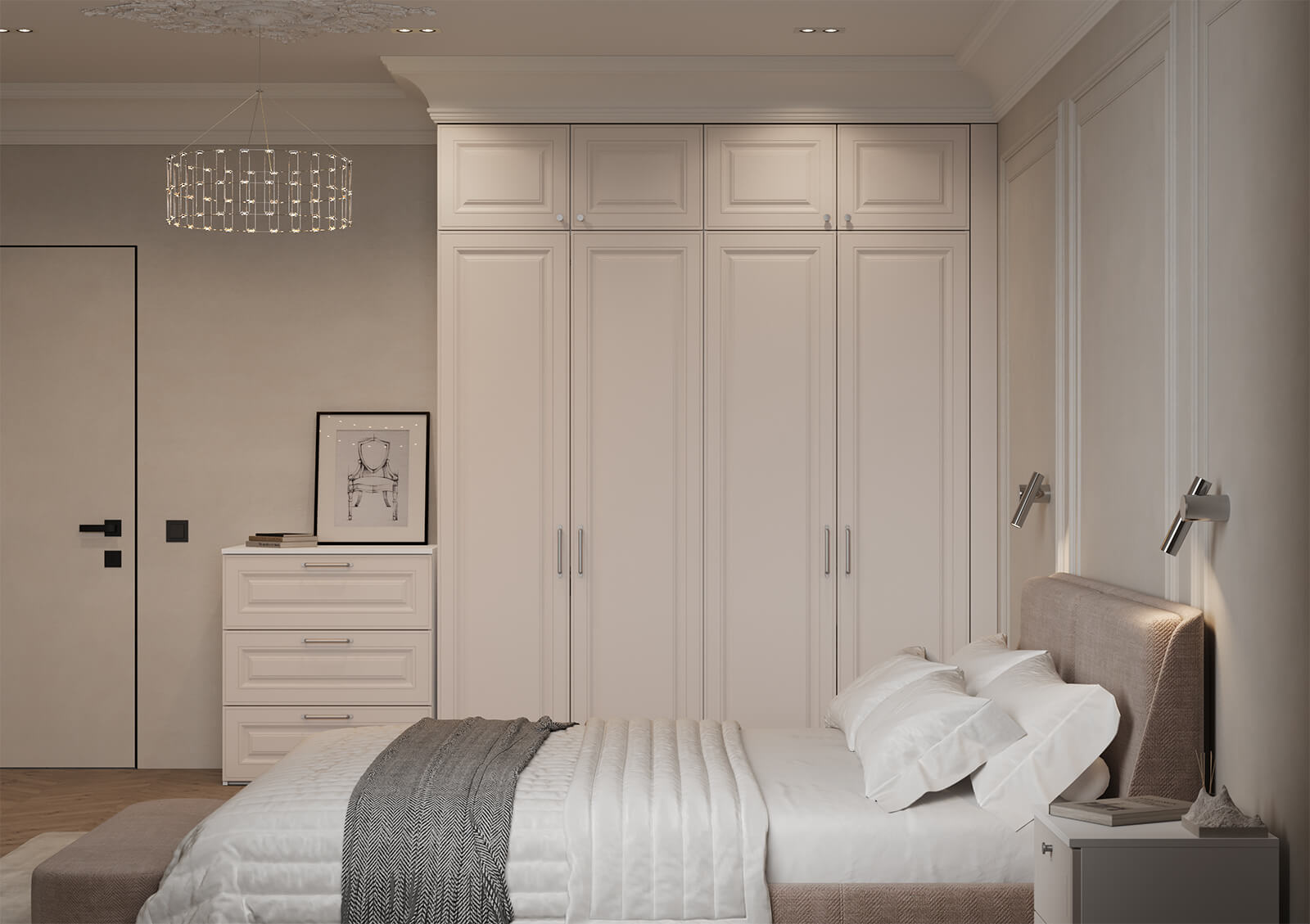Штанга для одежды Ø25 мм (цвет Хром), выдвижная корзина для белья (цвет Белый), выдвижная вешалка для брюк (цвет Белый)