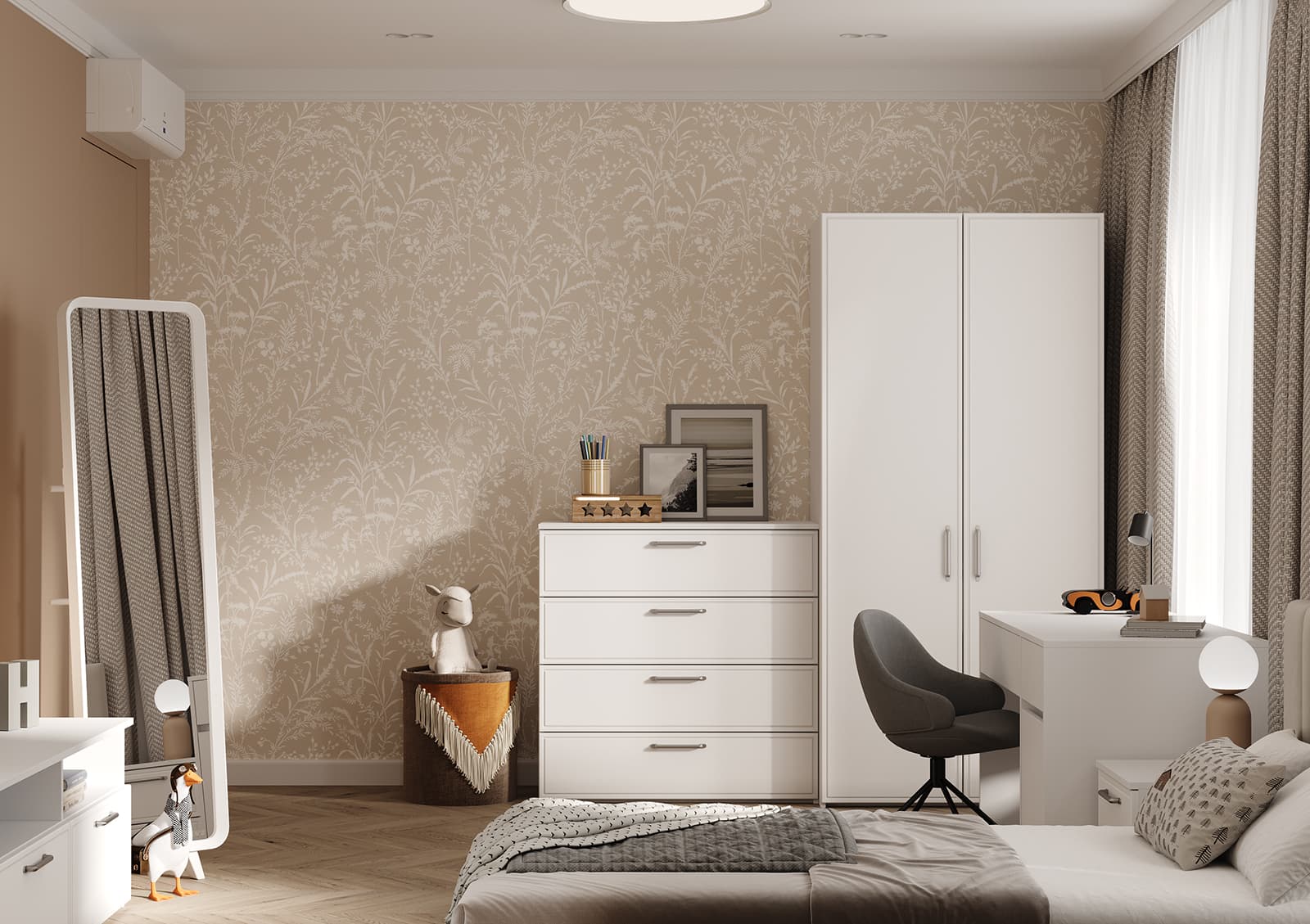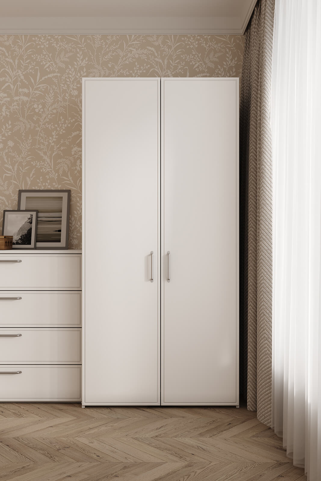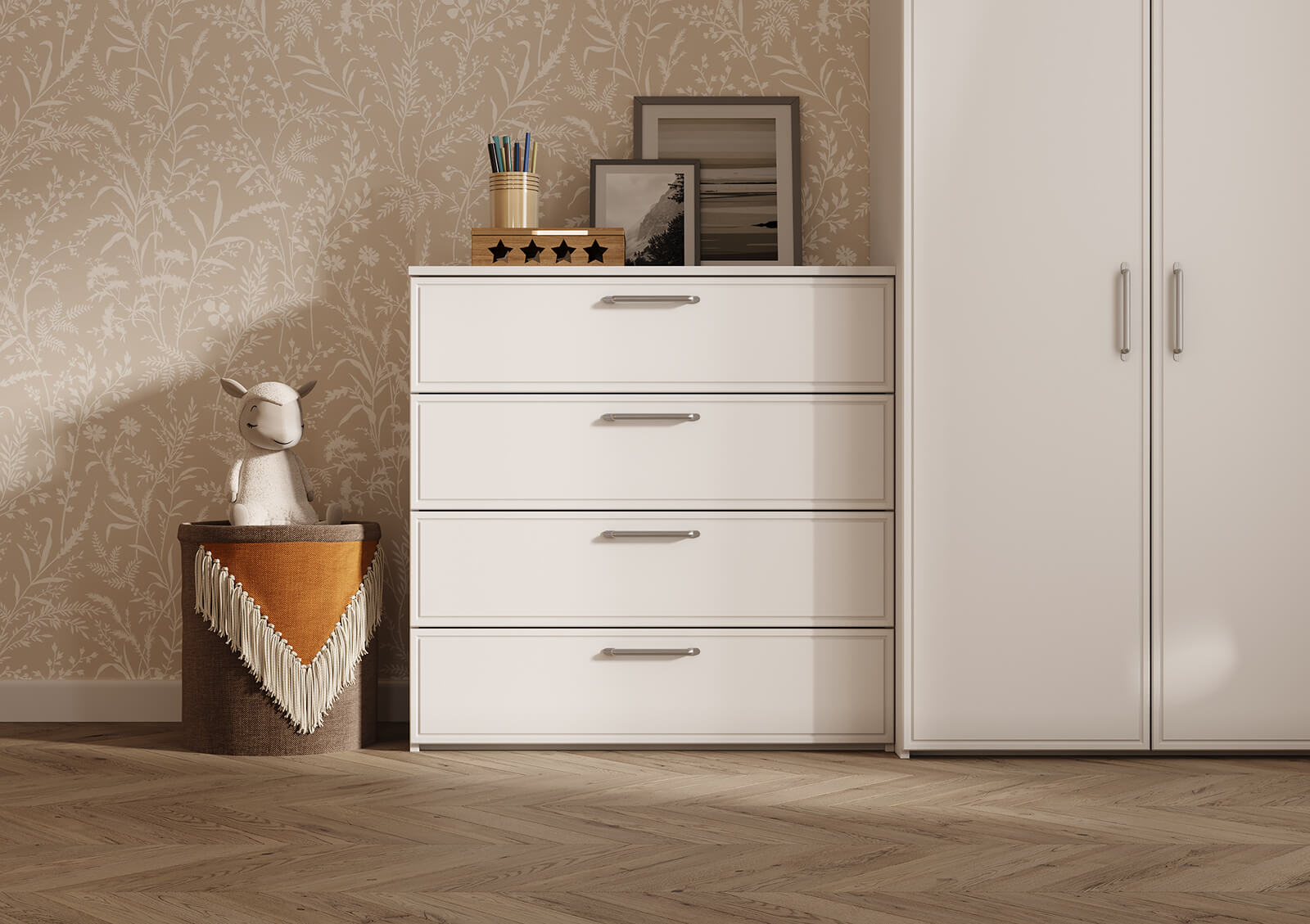 Штанга для одежды Ø25 мм (цвет Хром), выдвижная корзина для белья (цвет Белый)