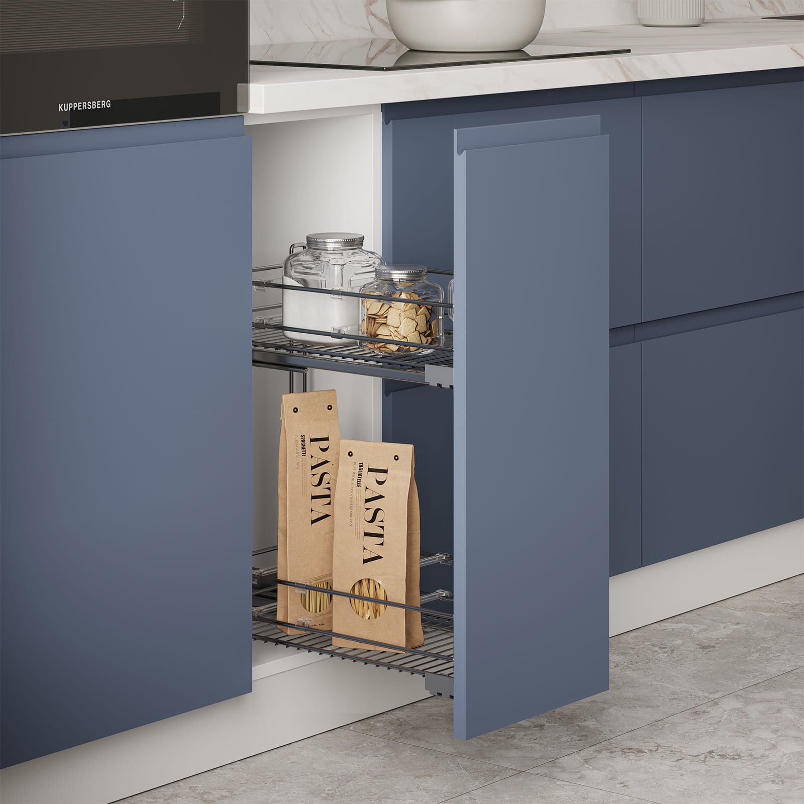 Выдвижная корзина Ларио (ширина 300 мм), сушка для посуды в выдвижной ящик (хромированная сталь, ширина 600 мм), лоток для столовых приборов (цвет Белый, ширина 600 мм), решетка вентиляционная алюминиевая 60 × 484 мм (цвет Алюминий), профиль LED накладной (цвет Алюминий)
