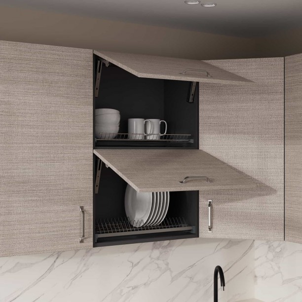 Сушка для посуды в верхний шкаф (2 уровня, хромированная сталь, ширина 600 мм), лоток для столовых приборов (цвет Графит, ширина 600 мм)
