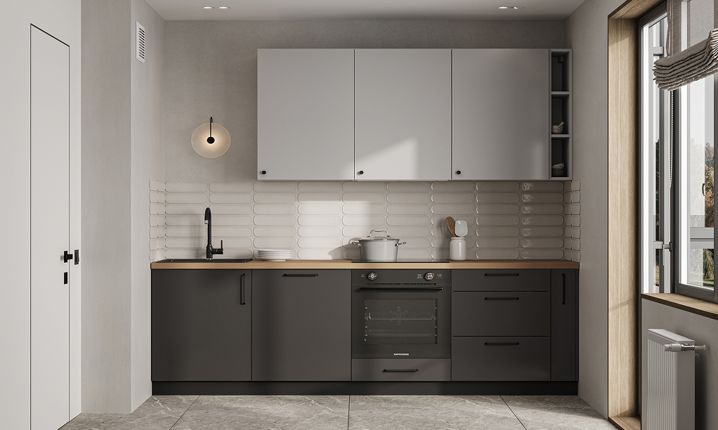 ЛМДФ EVOGLOSS, цвет Антрацит (глянец) / Светло-серый (глянец)