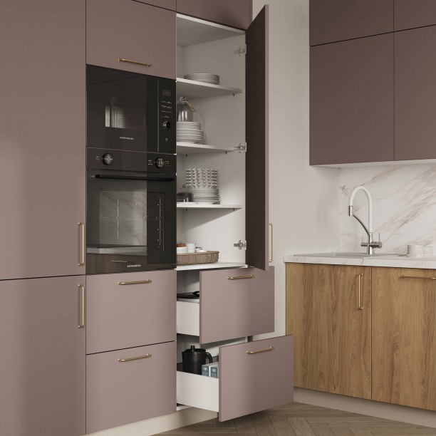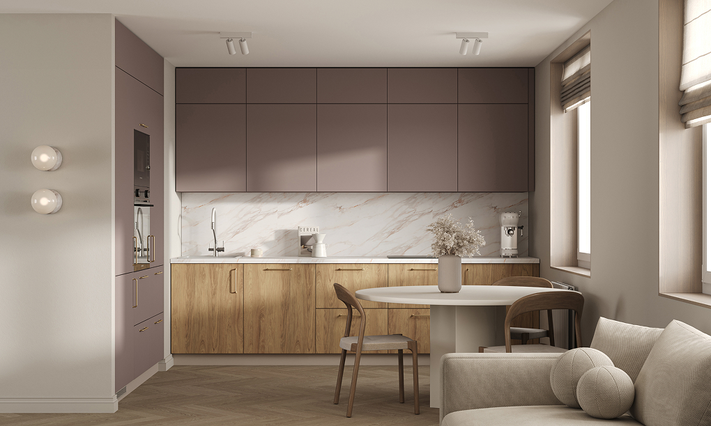 Т619 крашеная МДФ, цвет NCS S 4010-R10B матовый / ЛДСП Вуд, декор Гикори Натуральный
