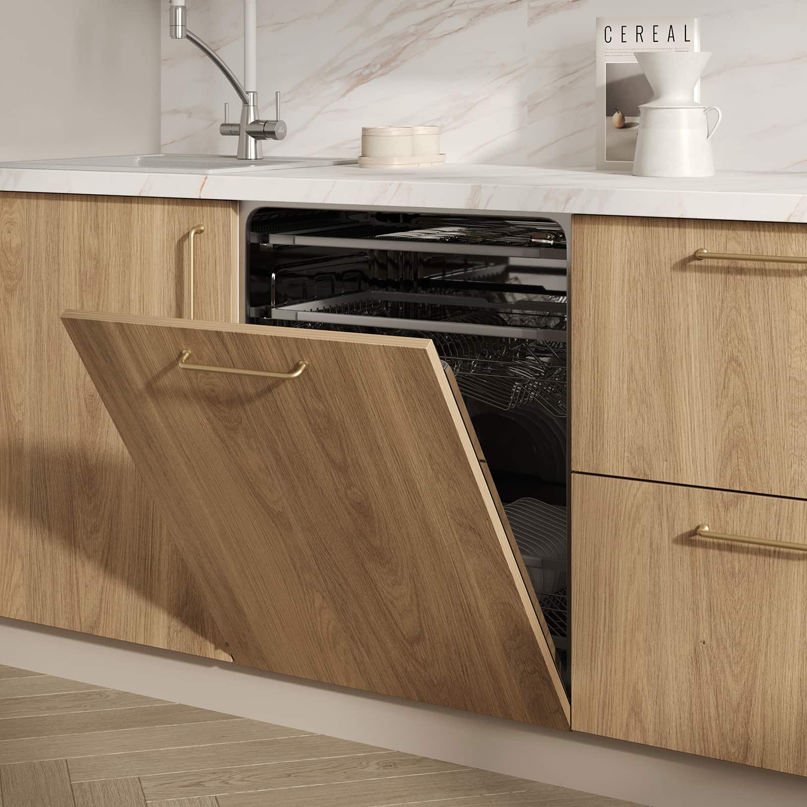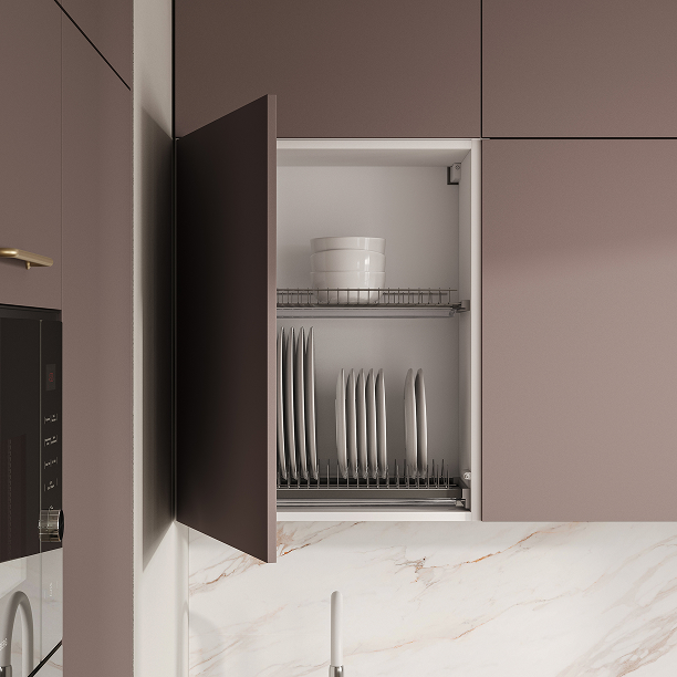 Сушка для посуды в верхний шкаф (2 уровня, хромированная сталь, ширина 600 мм), лоток для столовых приборов (цвет Белый, ширина 600 мм), решетка вентиляционная алюминиевая 60 × 484 мм (цвет Алюминий)