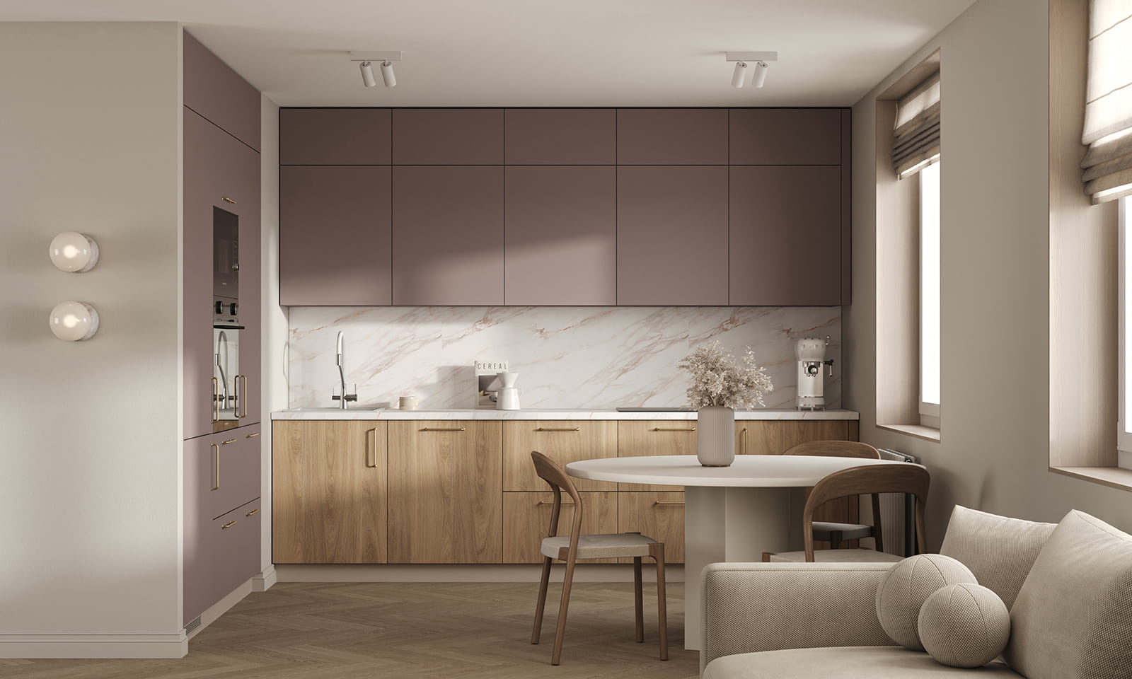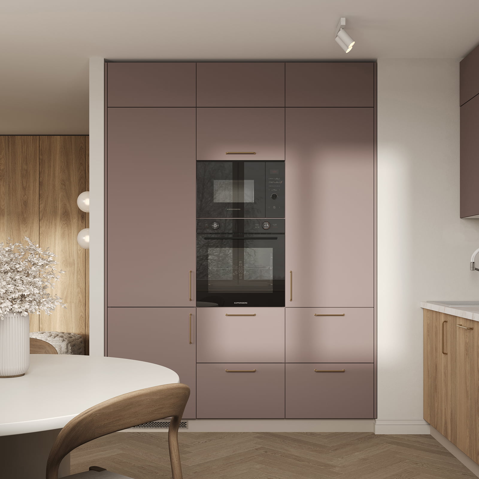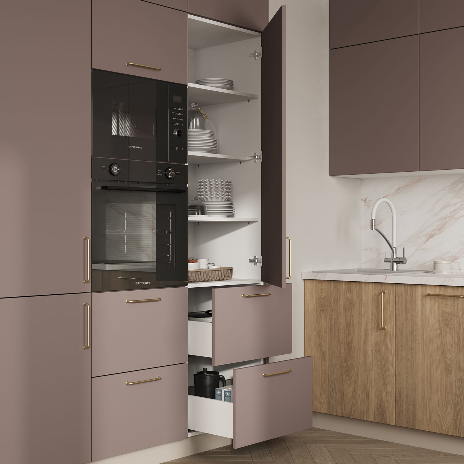 Т619 крашеная МДФ, цвет NCS S 4010-R10B матовый / ЛДСП 18 мм, декор Дуб Медовый
