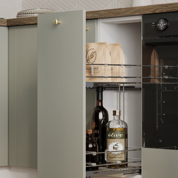Выдвижная корзина Ларио (ширина 300 мм), сушка для посуды в верхний шкаф (2 уровня, хромированная сталь, ширина 800 мм), лоток для столовых приборов (цвет Белый, ширина 600 мм), решетка вентиляционная алюминиевая 60 × 484 мм (цвет Алюминий), профиль LED угловой накладной (цвет Алюминий)