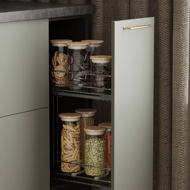 Выдвижная корзина Ларио (ширина 300 мм), сушка для посуды в верхний шкаф (2 уровня, хромированная сталь, ширина 900 мм), лоток для столовых приборов (цвет Графит, ширина 900 мм), решетка вентиляционная алюминиевая 60 × 484 мм (цвет Черный)
