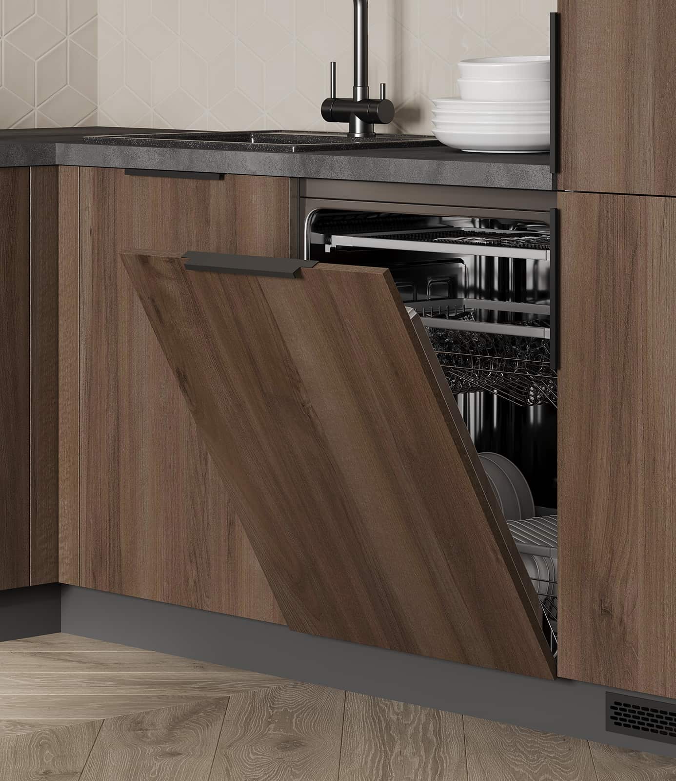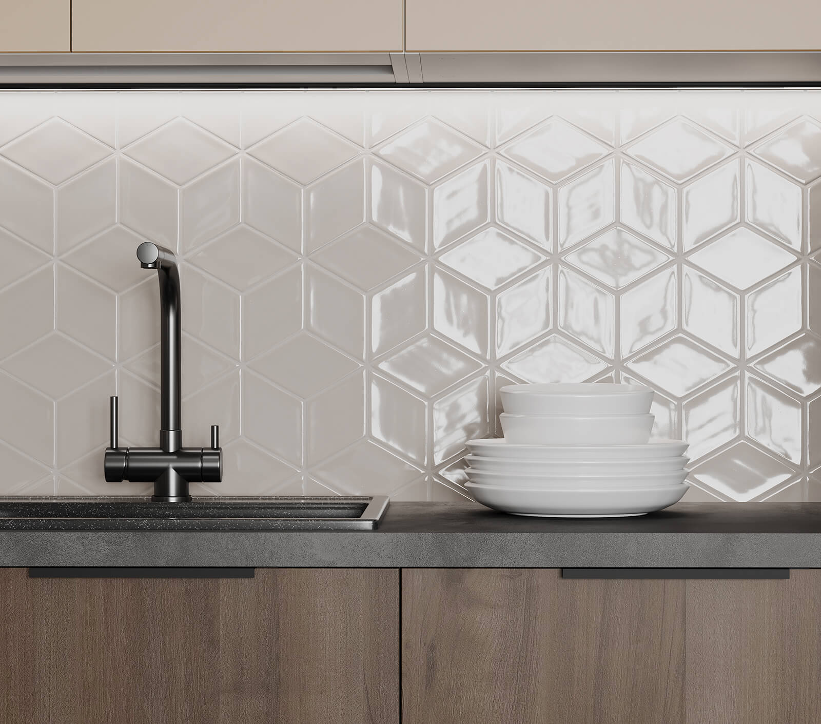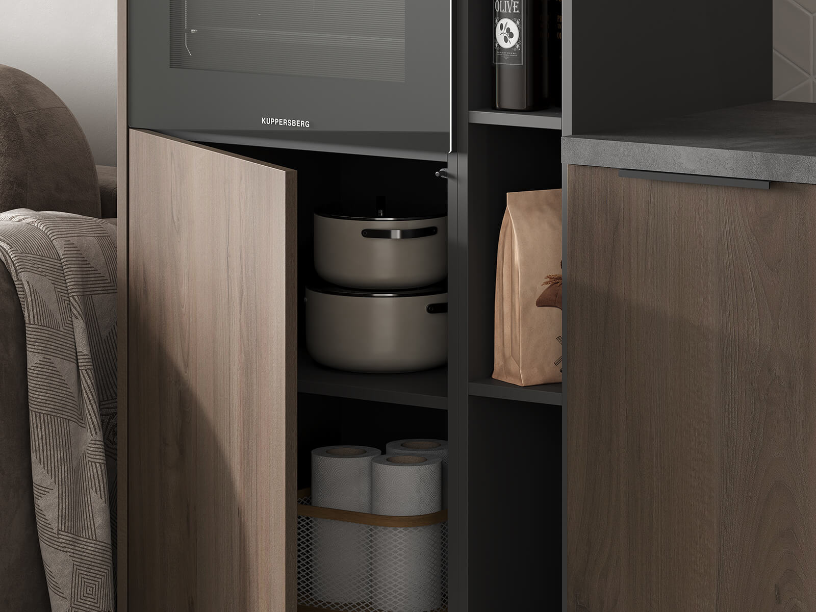 Сушка для посуды в верхний шкаф (2 уровня, хромированная сталь, ширина 800 мм), лоток для столовых приборов (цвет Графит, ширина 700 мм), решетка вентиляционная алюминиевая 60 × 484 мм (цвет Черный), профиль LED накладной (цвет Черный)