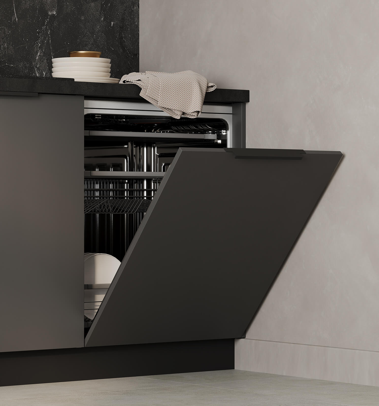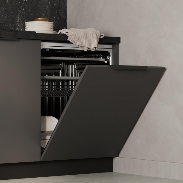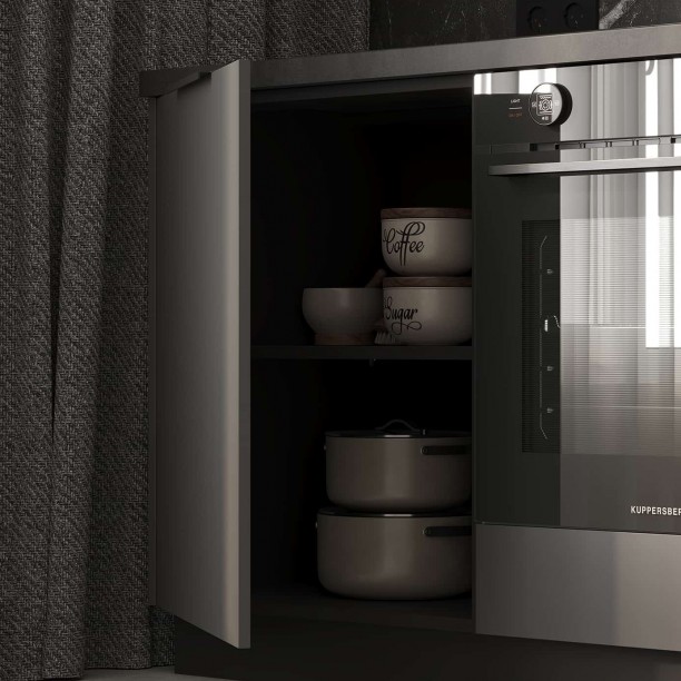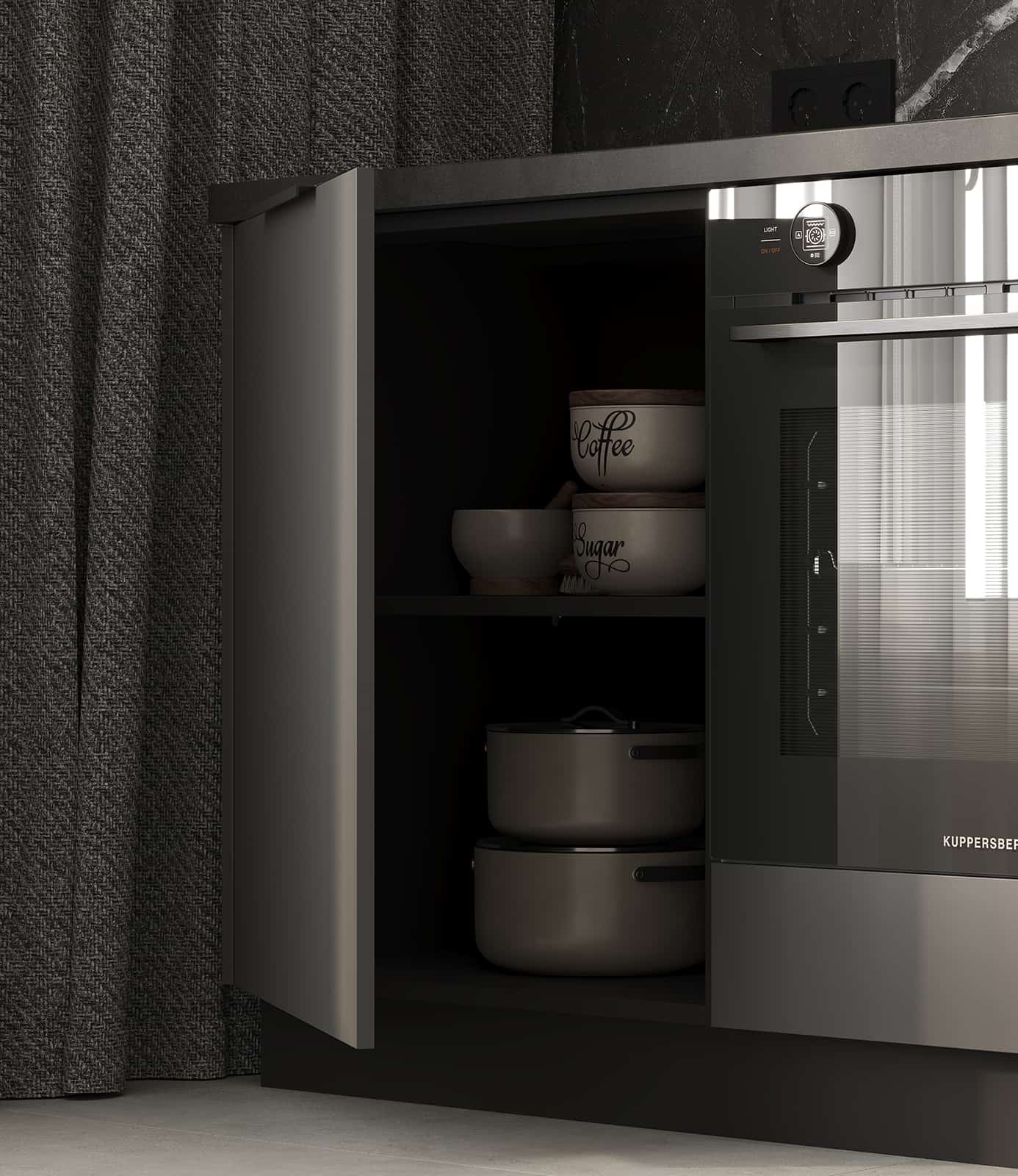 Сушка для посуды в верхний шкаф (2 уровня, хромированная сталь, ширина 600 мм), лоток для столовых приборов (цвет Графит, ширина 600 мм), профиль LED угловой накладной (цвет Чёрный)