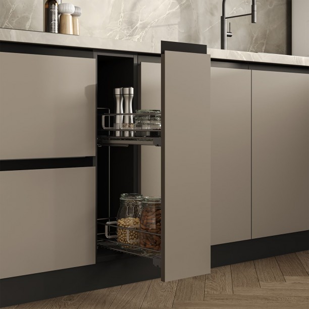 Выдвижная корзина Ларио (ширина 200 мм), сушка для посуды в верхний шкаф (2 уровня, хромированная сталь, ширина 600 мм), лоток для столовых приборов (цвет Графит, ширина 600 мм)